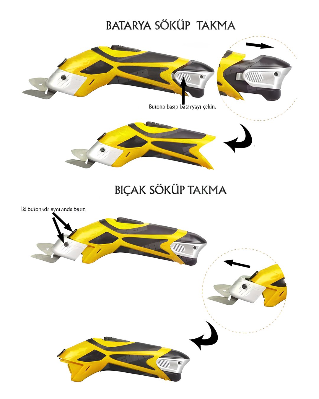 Paket içeriği: 1 Adet Makine (ucunda bıçak mevcut) 1 Adet Yedek Bıçak 2 Adet batarya 1 Adet şarj Cihazı 2 Yıl Garantili