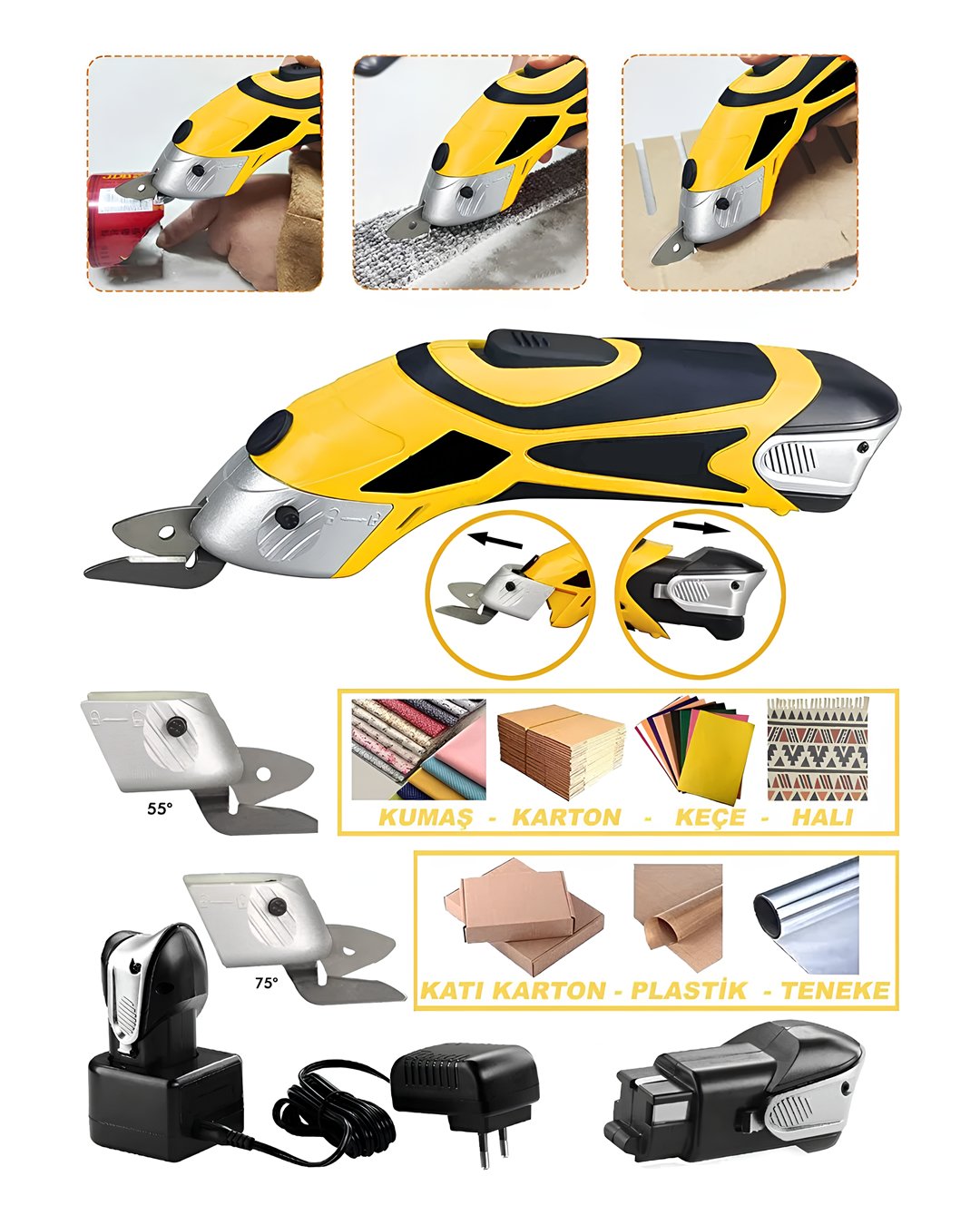Şarjlı ve elektrikli kullanım desteği ile her ortamda çalışma imkanı sunar. 30 dakika hızlı şarj ile yaklaşık 2 saat kesim yapabilir.