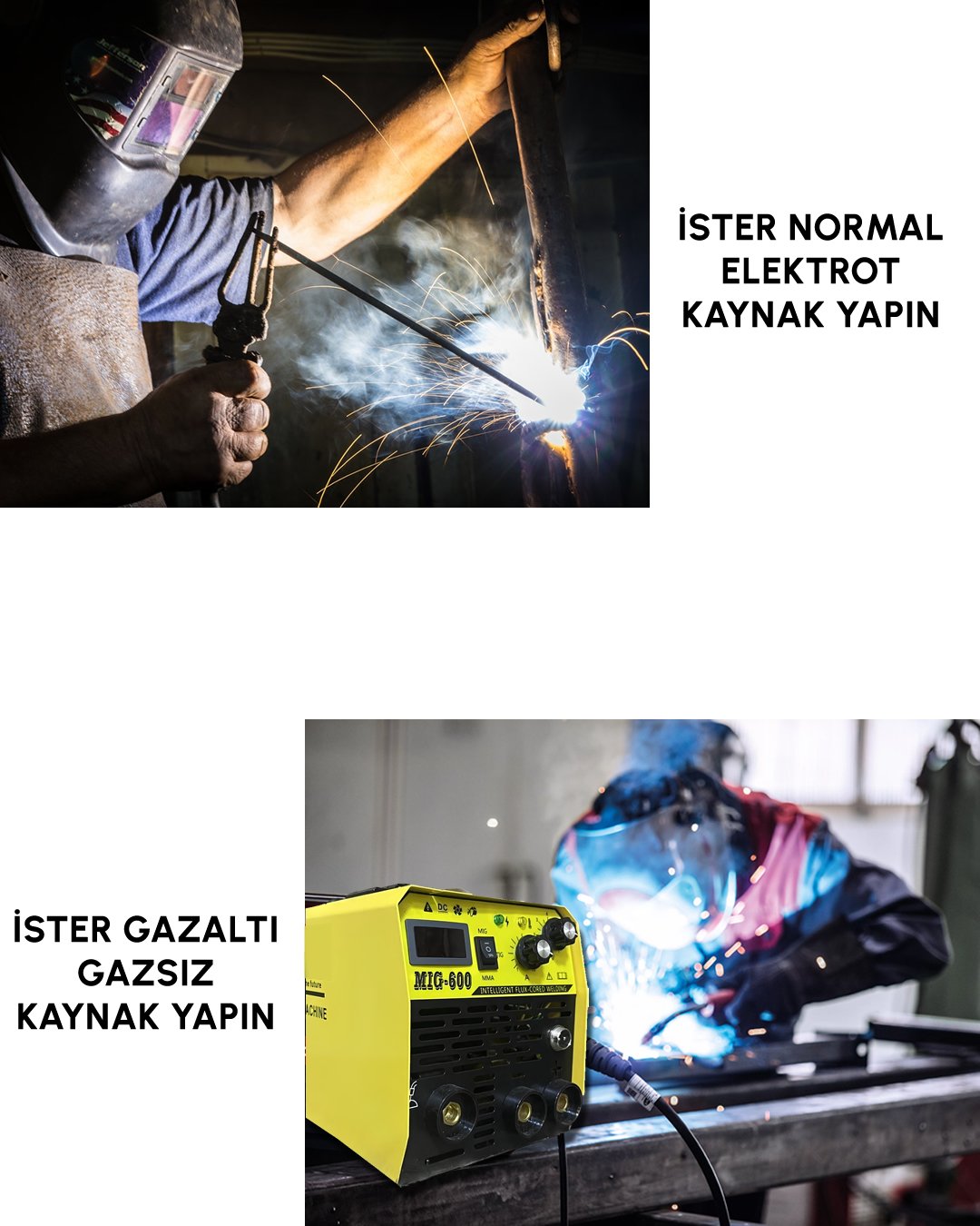İster normal kaynak elektrot kaynağı olarak kullanın , ister gaz altı gazsız tel kaynak olarak kullanın istersenizde tig kaynak olarak 3 çeşitte kullanım için mevcuttur.