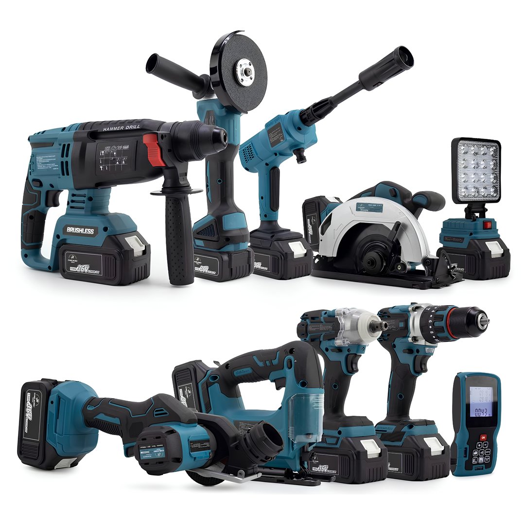Parçalar :1 adet taşıma çantası, 1 adet led ışık, 1 adet sunta kesme, 1 adet somun sıkma , 1 adet taşlama , 1 adet kırıcı delici, 1 adet vidalama matkap, 1 lazer metre, 1 çok fonksiyonlu taşlama, 1 adet dekupaj, 1 adet oto yıkama, 4 adet batarya , 2 adet şarj cihazı , Ek Parçalar