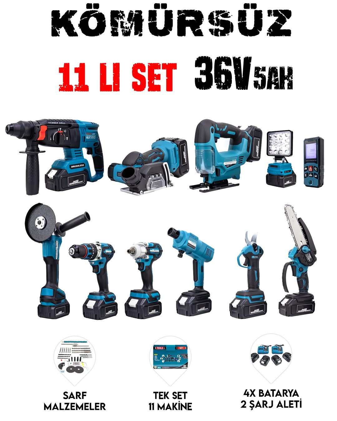 Kömürsüz motor yapısı ile uzun süre kullanım imkanı sunan bu sette 4 batarya ve 2 şarj cihazı ile tüm işlerinizi kolaylıkla yapabilirsiniz.