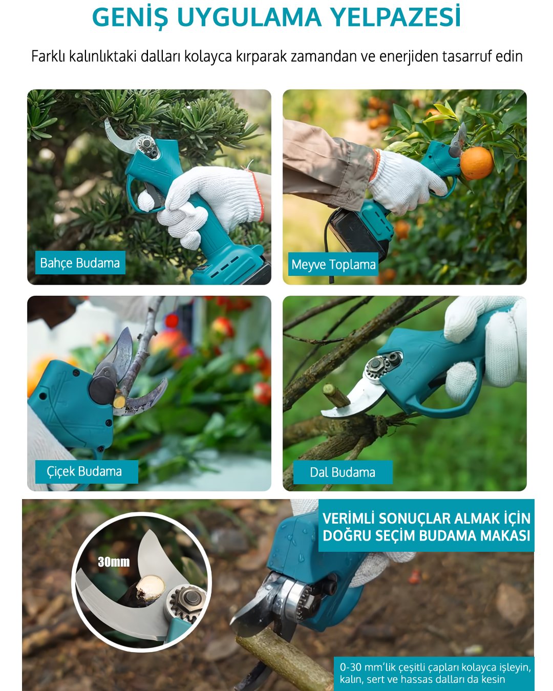 24V Şarjlı Budama Testeresi ve Akülü Budama Makası Seti, profesyonel ve hobi kullanıcıları için tasarlanmış yüksek performanslı, pratik ve taşınabilir bir çözümdür.