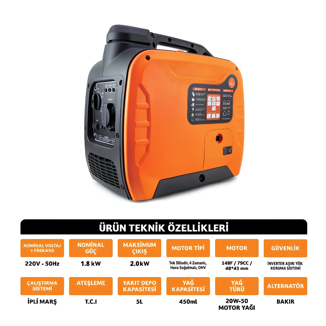 Dawreek GS0012 2KW İnverter Jeneratör, kesintisiz enerji ihtiyacınız için güçlü ve güvenilir bir çözüm sunar. Evde, iş yerinde, şantiyede veya doğada… Nerede olursanız olun elektriğiniz hep sizinle!