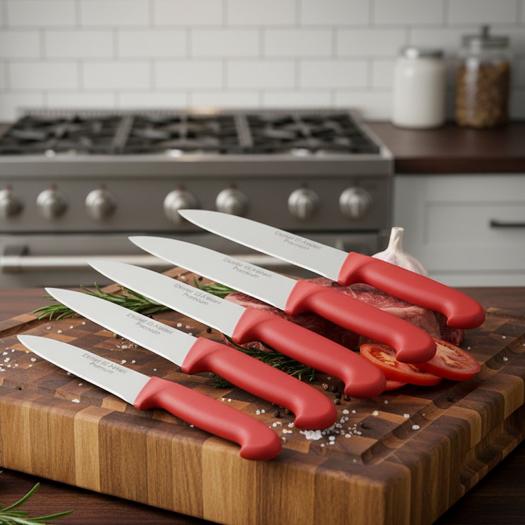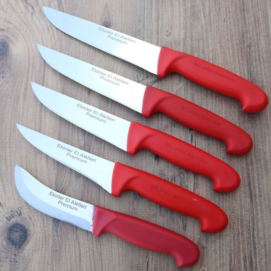 PH025 Plastik Saplı Premium Paslanmaz Çelik 5 li Kasap Ve Mutfak Bıçağı Seti