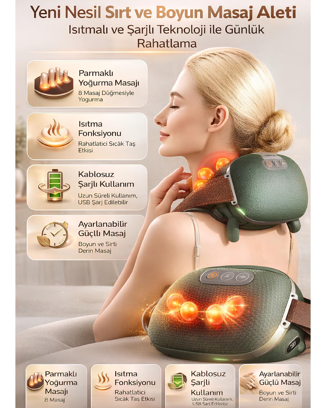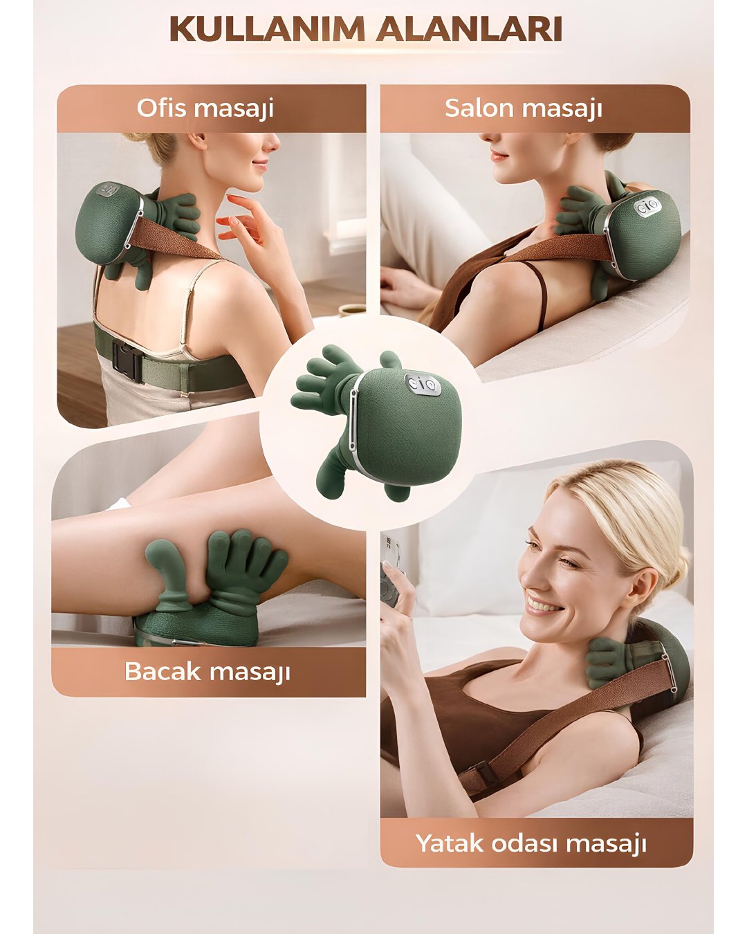 Yoğun tempoda çalışanlar, uzun süre masa başında kalanlar ya da gün sonunda boyun ve omuz bölgesinde sertlik hissedenler için tasarlanan bu masaj aleti, el yoğurma hissiyatını birebir taklit eden 3D masaj teknolojisi ile kaslara doğrudan etki eder. İtme ve yuvarlama hareketleri sayesinde manuel masaj hissini net şekilde yaşatır.