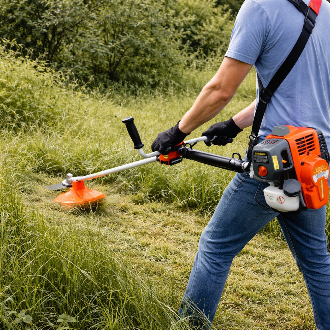 Bahçe ve tarla işlerinde ot, çalı ve yabani otları temizlemek için tasarlanmış güçlü ve etkili bir benzinli tırpandır.