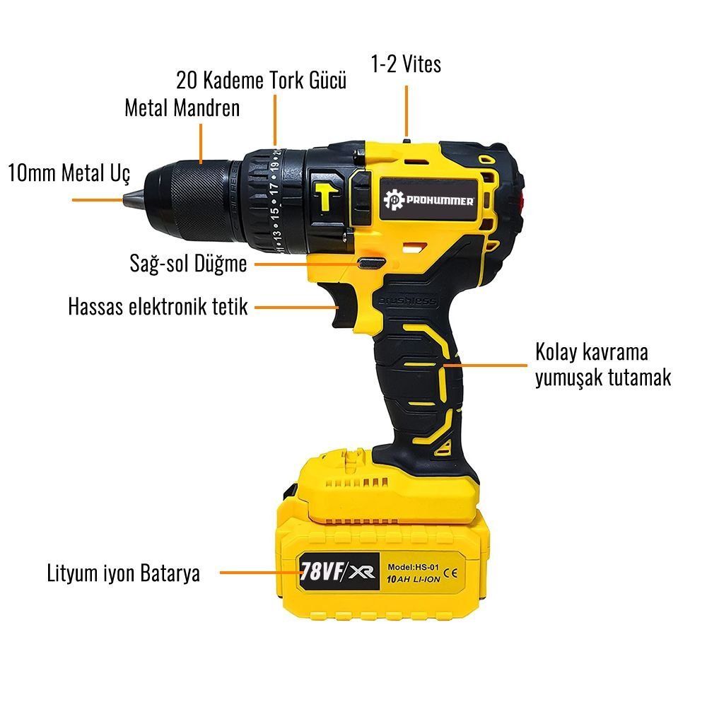 Rahat kullanım için titreşimi emen kauçuk kaplı kabza İki vitesli şanzıman ile farklı malzemelerde kullanılmak için değişken hız ve sağ/sol dönüş ayarı İki vitesli şanzıman, duvar, ahşap, beton, çelik, plastik ve metalde tüm uygulamalar için yeterlidir