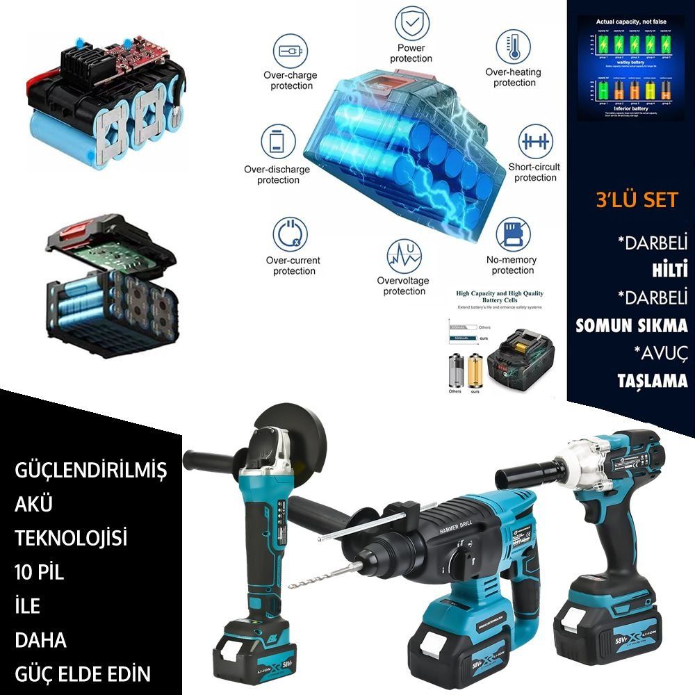 3lü ultra set takımı ile işlerinizi tek bir yerde toplayıp kolaylık sağlıyor. 58w ve 5ah max güç ile daha güçlü