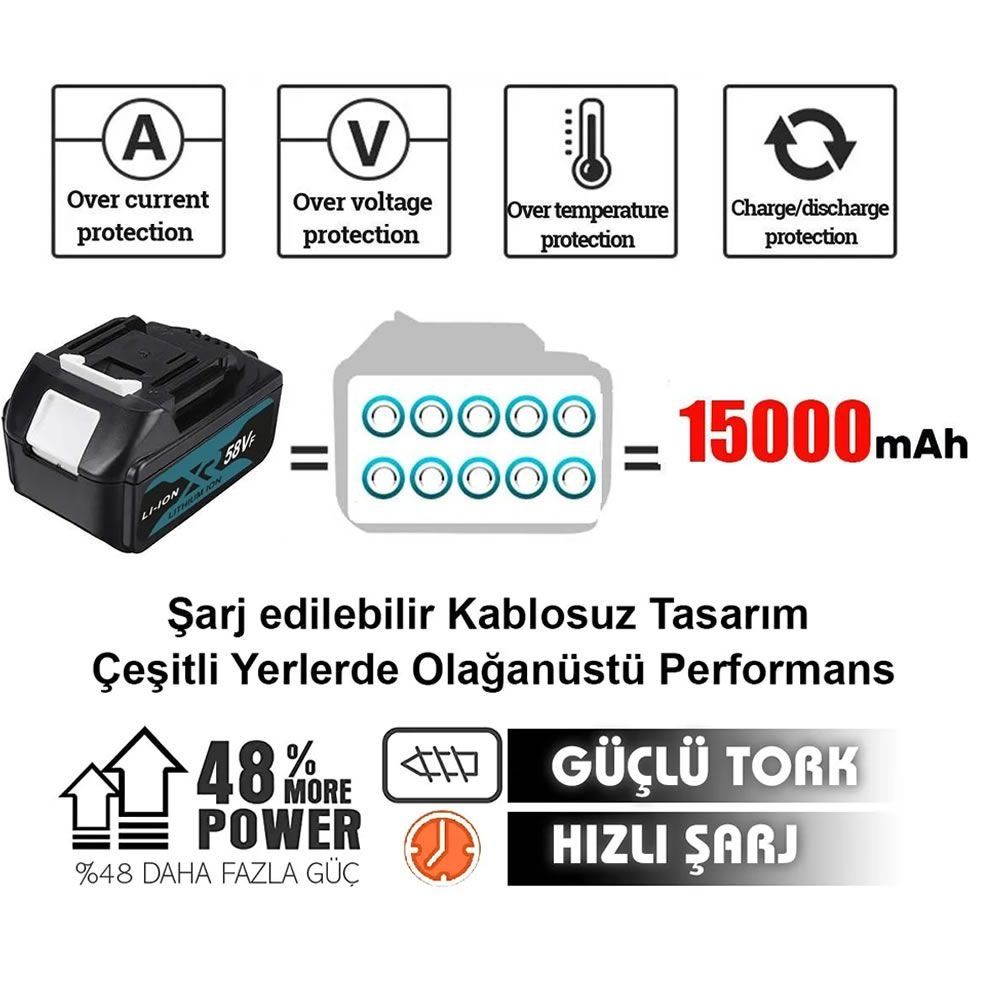 Akü Teknolojisi: Li-Ion 37 Volt Maksimum Performance 58 Vf