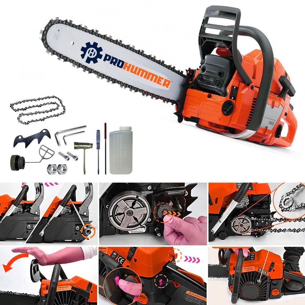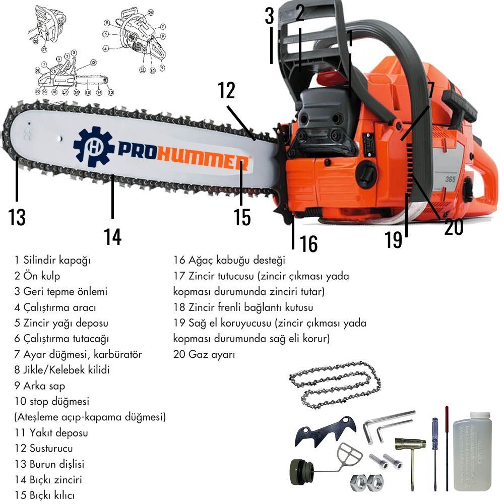 Yüksek kesme kapasitesine sahip 50 cc profesyonel motorlu testere Prohummer T185 yüksek devire sahip testereler arasında üstün kapasiteli profesyonel bir testeredir.
