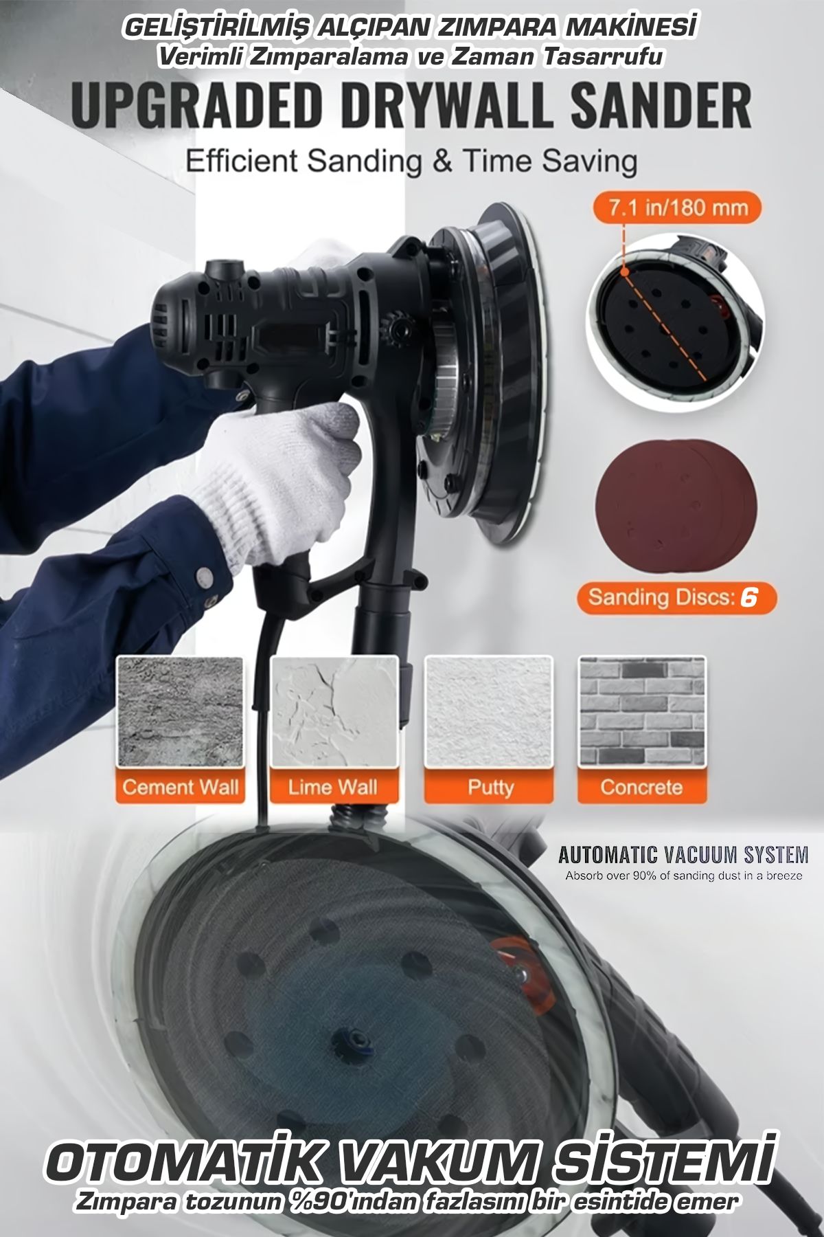 850W Profesyonel Toz emişli alçıpan zımpara makinesi
