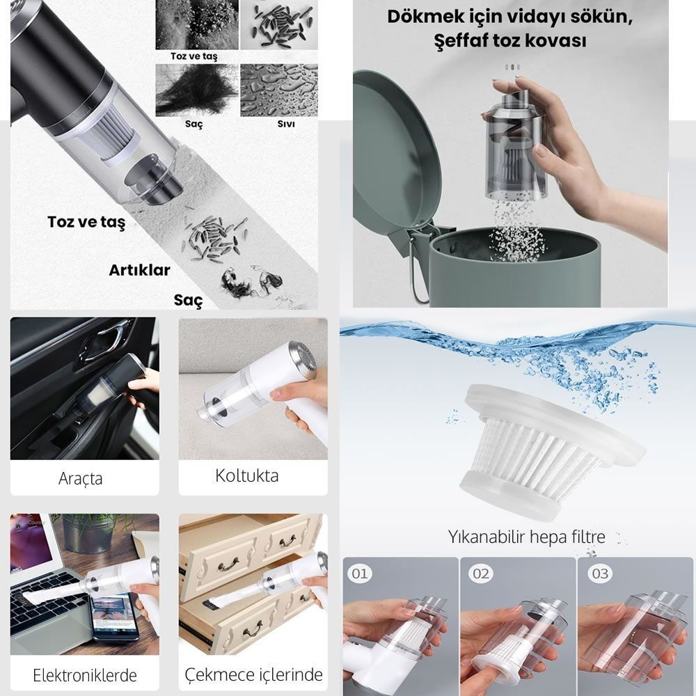 | Tür: | Ev ve araba ıslak ve kuru için yeni taşınabilir USB kablosuz araba şarjı temizleyici |