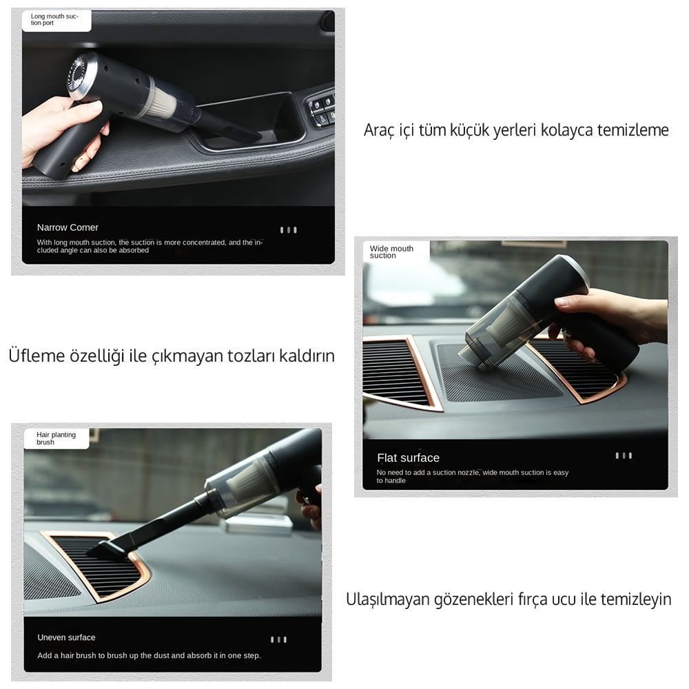 Evde, tatilde ve her yerde yanınızda! Yüksek çekim gücü, aracınızda her yere erişebilen başlıkları ve taşıma kolaylığı ile istenmeyen tozlara elveda