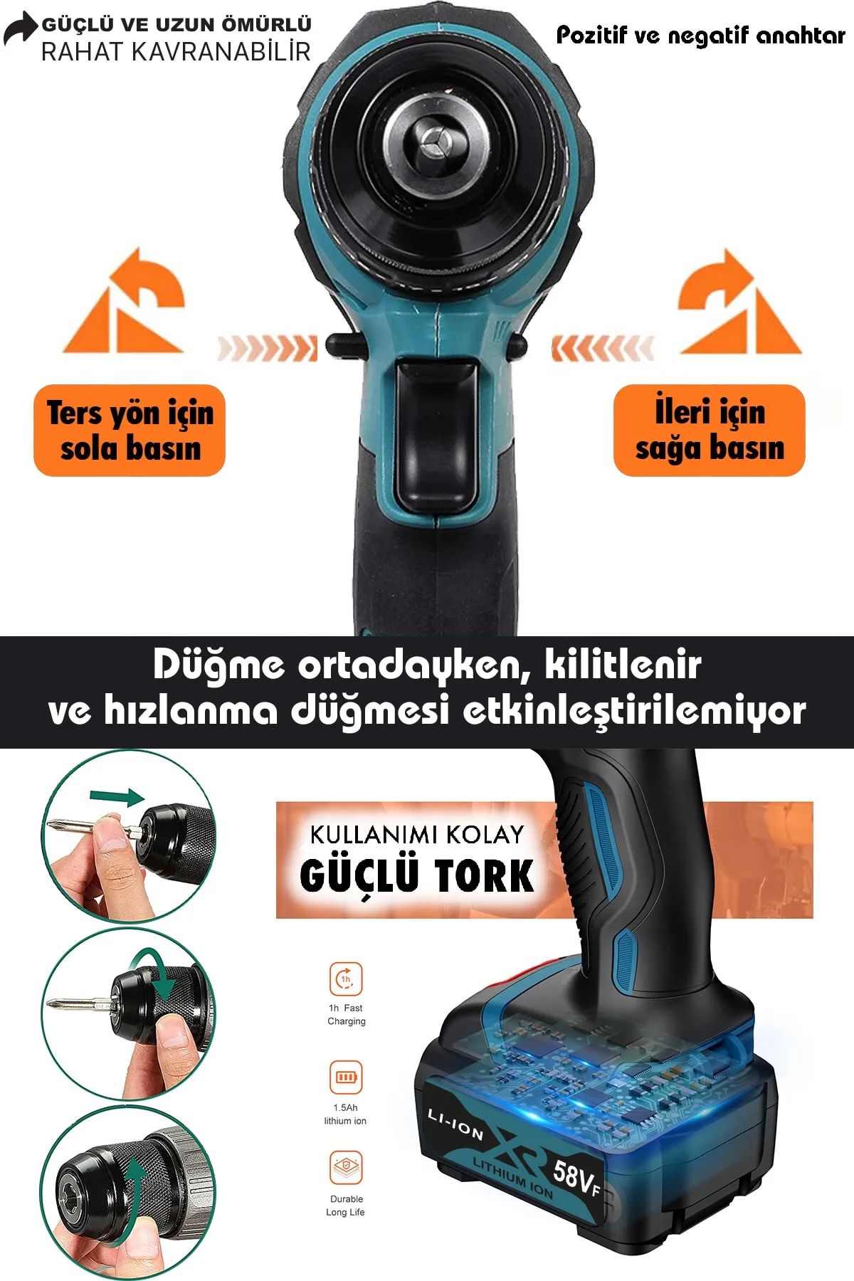 Evde ofiste işte rahatlıkla kullanabileceğiniz çift bataryalı vidalama matkap seti geliştirilmiş lityum iyon pillerle uzun ömür sağlar