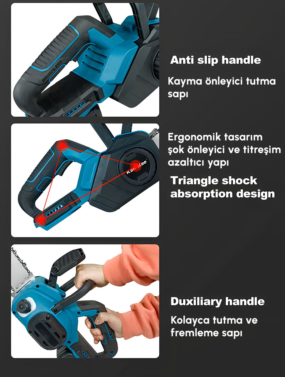 Kullanmadan önce zinciri ayarlanız , zincirin kesim yönüne dikkat ediniz. Zincir yağını doldurunuz.