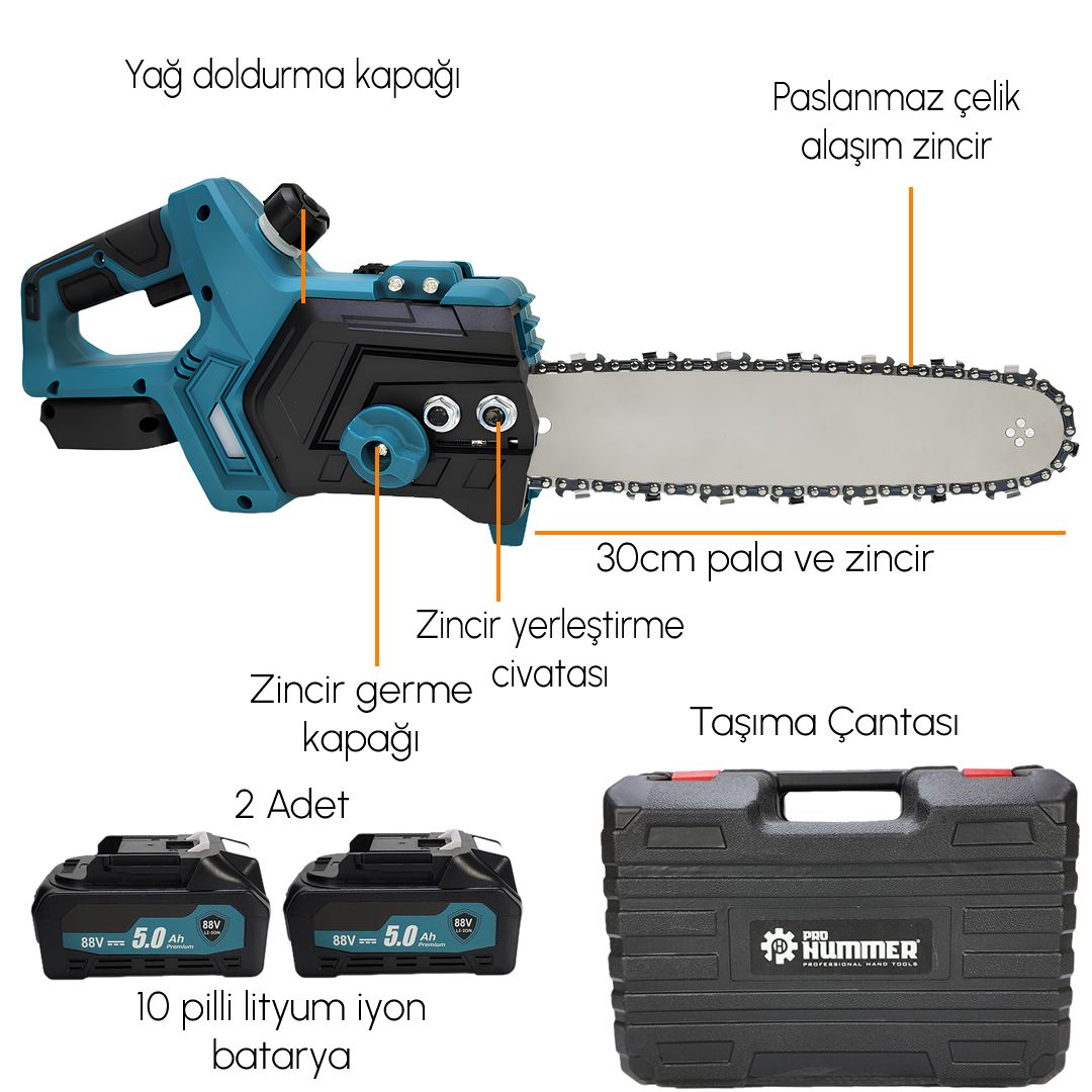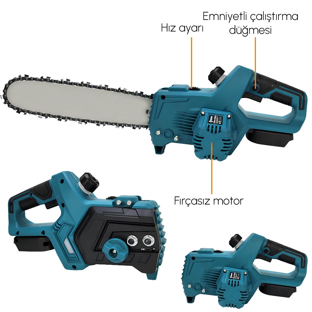 Profesyonel şarjlı ağaç dal kesim motoru hafifliği ve güçlü kesimi ile dal budama işleriniiz kolaylıkla halledin. Geliştirilmiş kömürsüz motor yapısı sayesinde üstün seviye sunuyor.