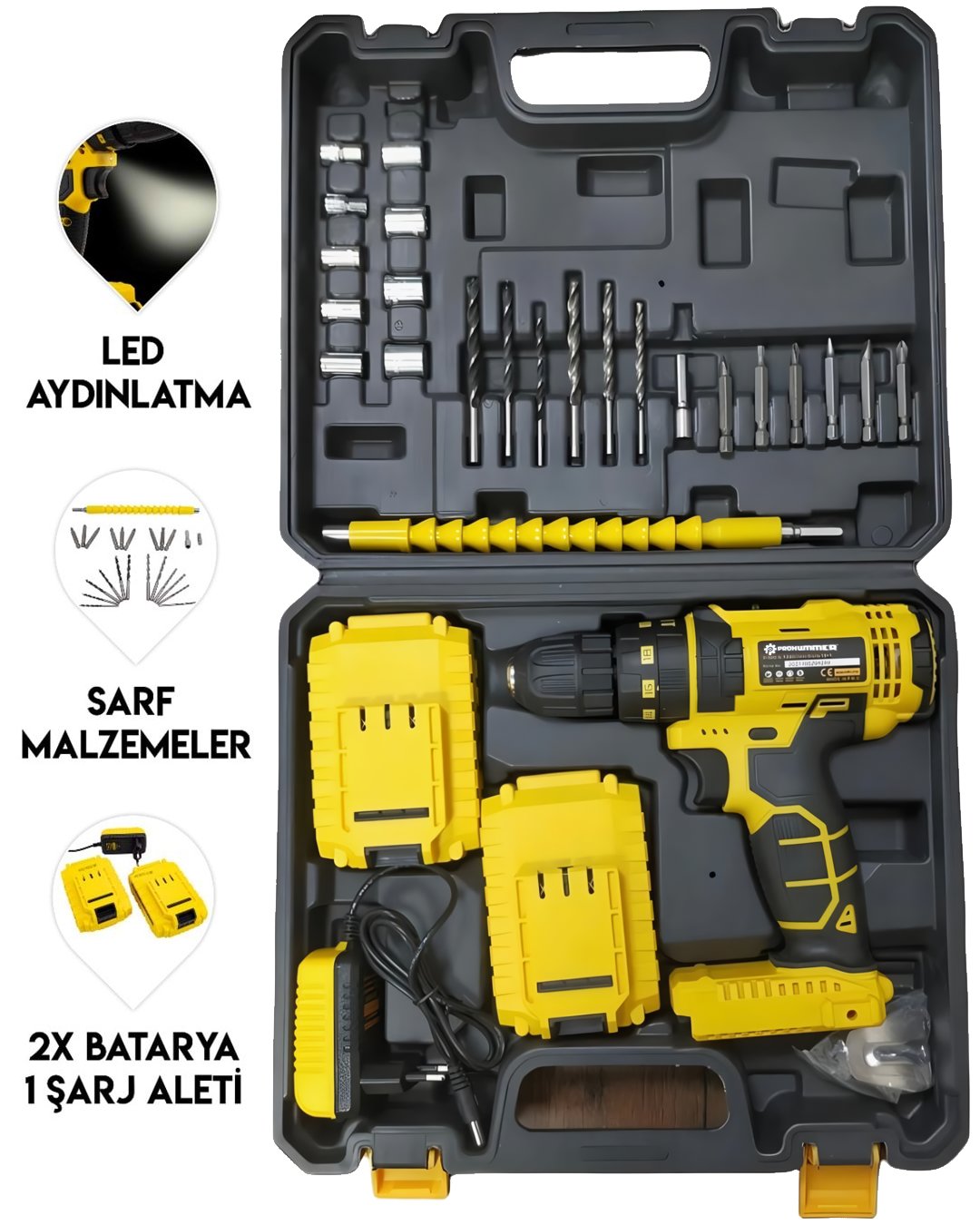 Prohummer akülü vidalama matkap seti ile evde işyerinde kolayca kullanabilirsiniz.