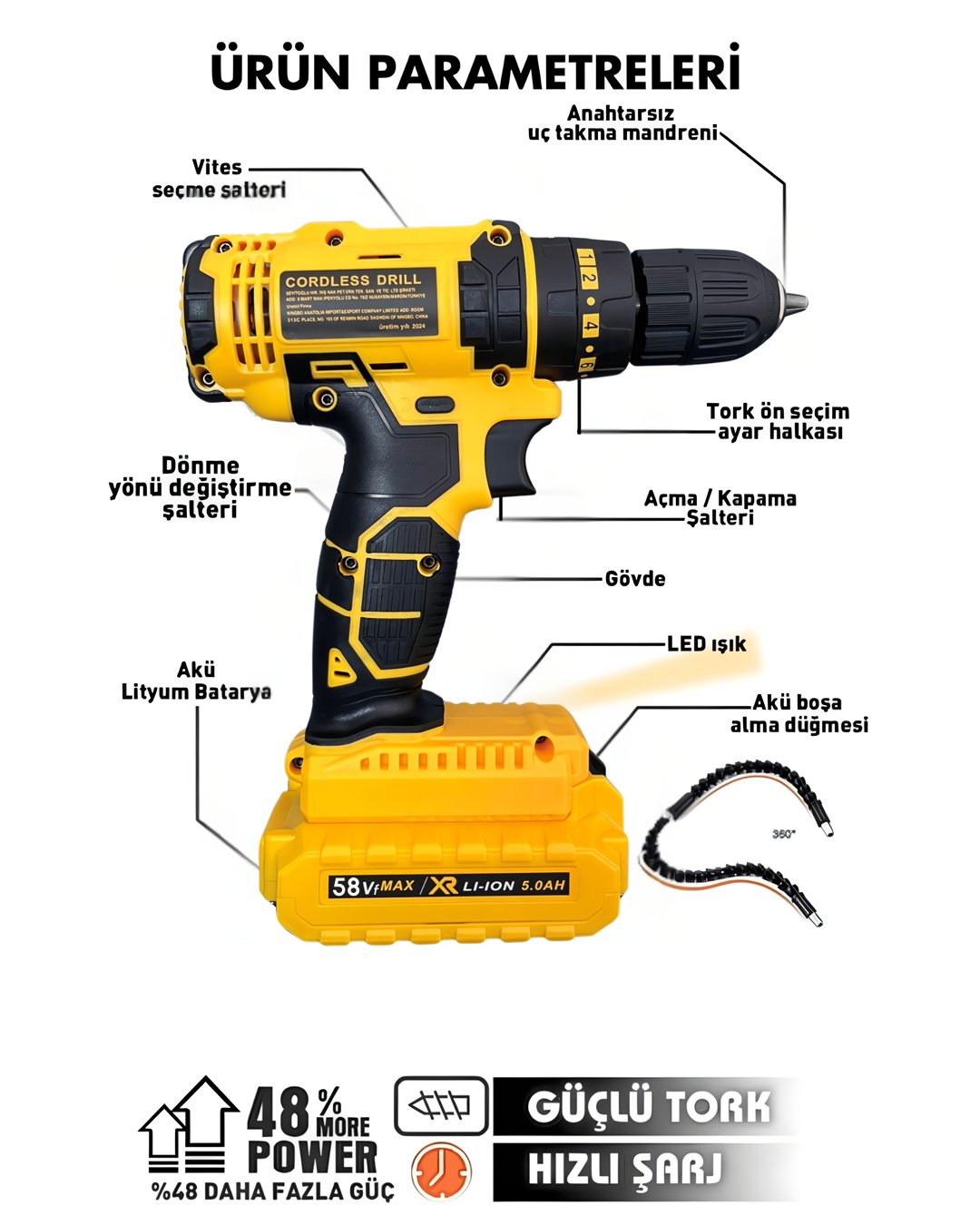 Akü Teknolojisi: XR Li-Ion 24 Volt Maksimum Performance 58vf