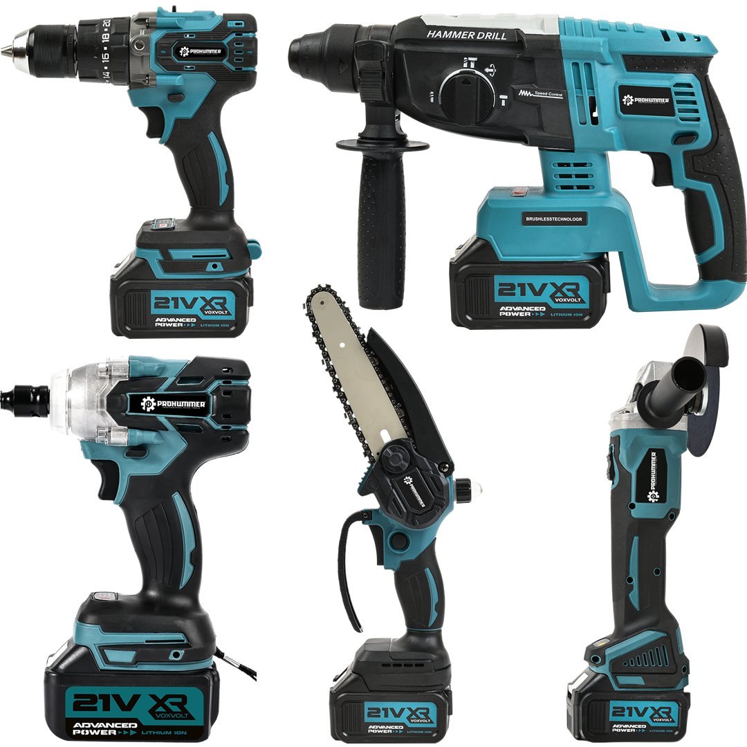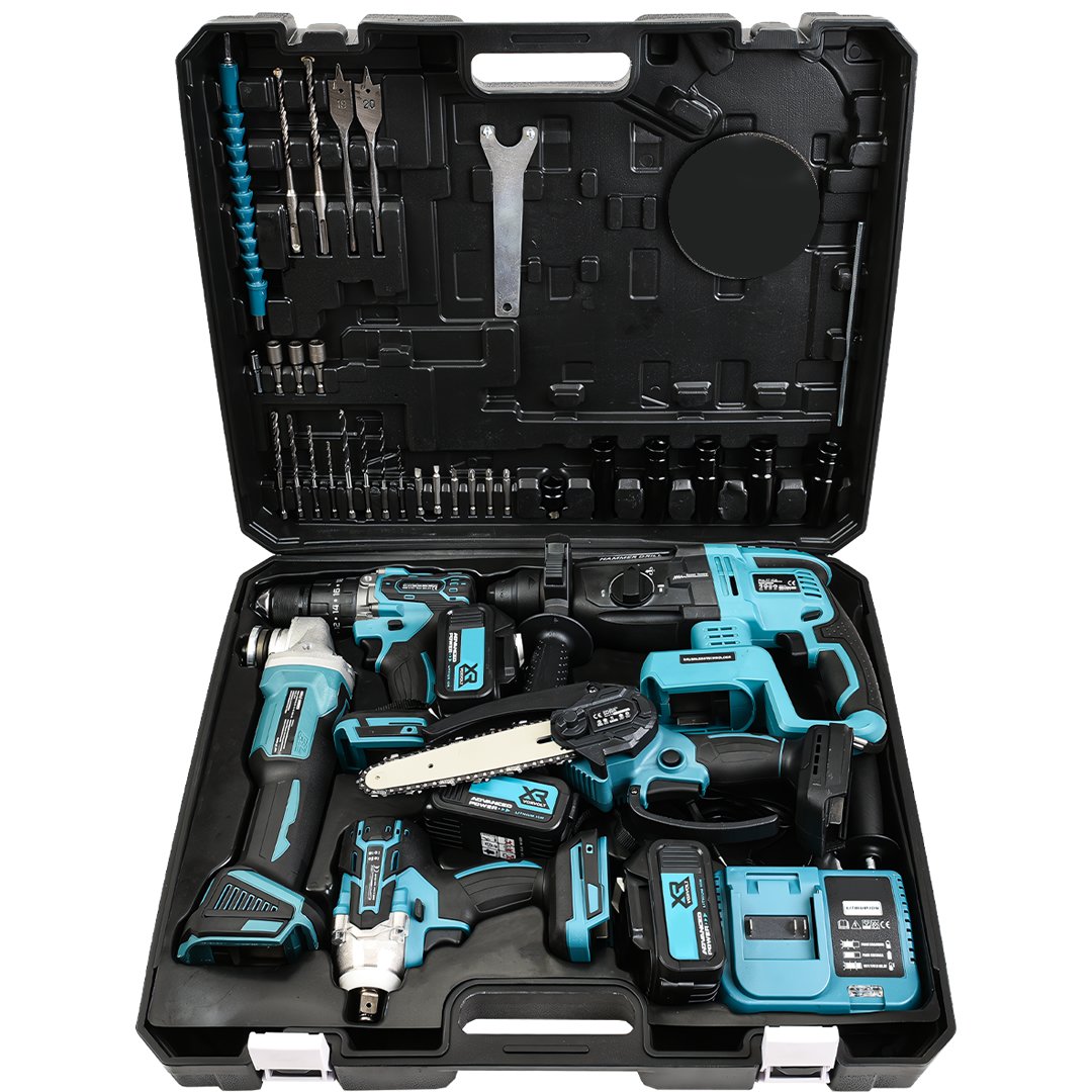 Profesyoneller için geliştirilmiş 5 ürün bir arada ; 125mm Avuç Taşlama, Sds Plus Kırıcı Delici Hilti, Somun Sıkma Sökme, Vidalama Matkap, otomatik yağlamalı 15cm pala Dal budama testeresi