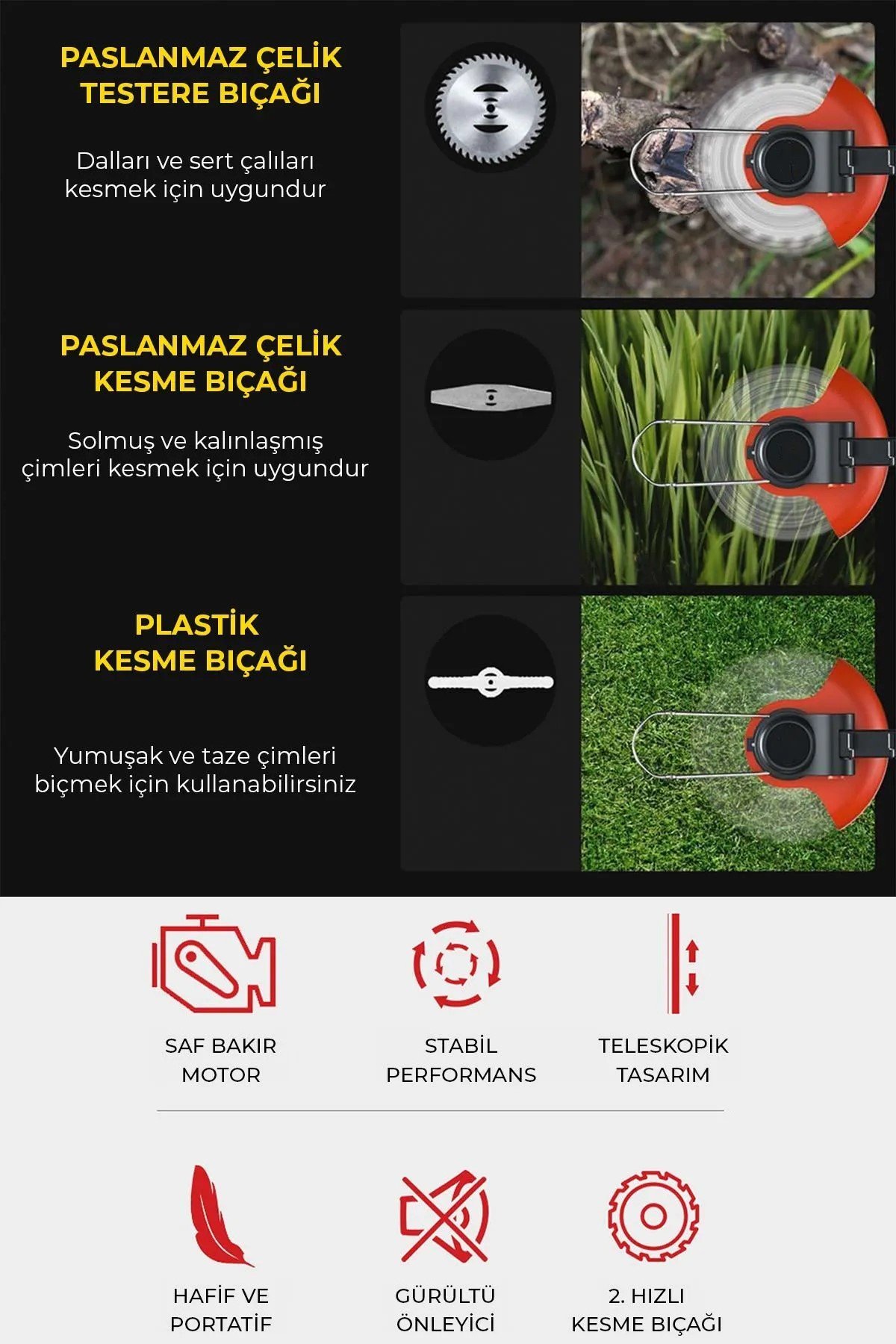 Ot temizleme, çim biçme ve dal kesme gibi işleri kolayca yapmanıza imkan sağlayan;