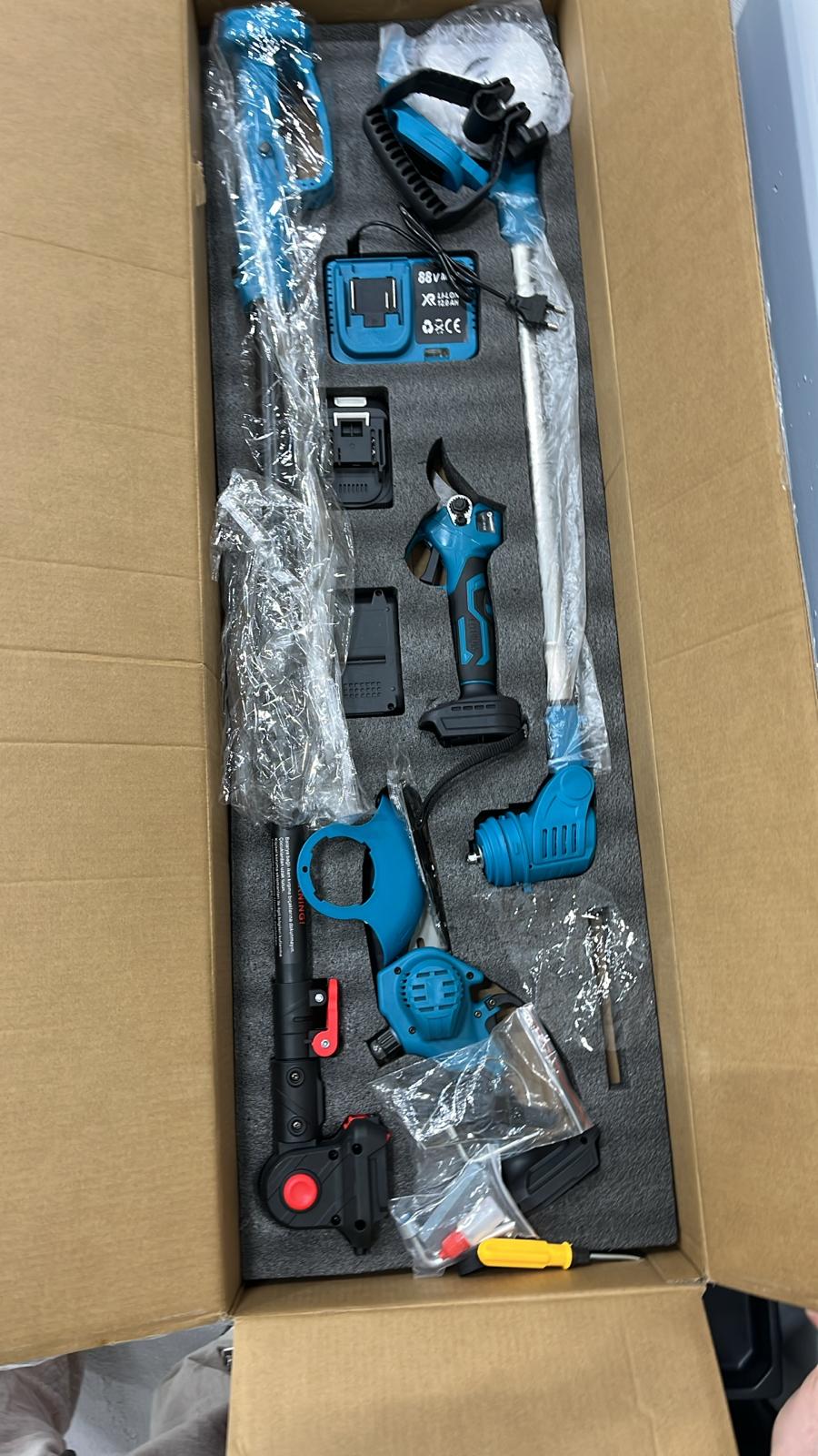 Aksesuarlar: 1 adet dal budama testeresi , 1 adet dal makası, 1 adet zincir , 1 adet pala, 2 metre uzatma teleskopik, Ek Parçalar