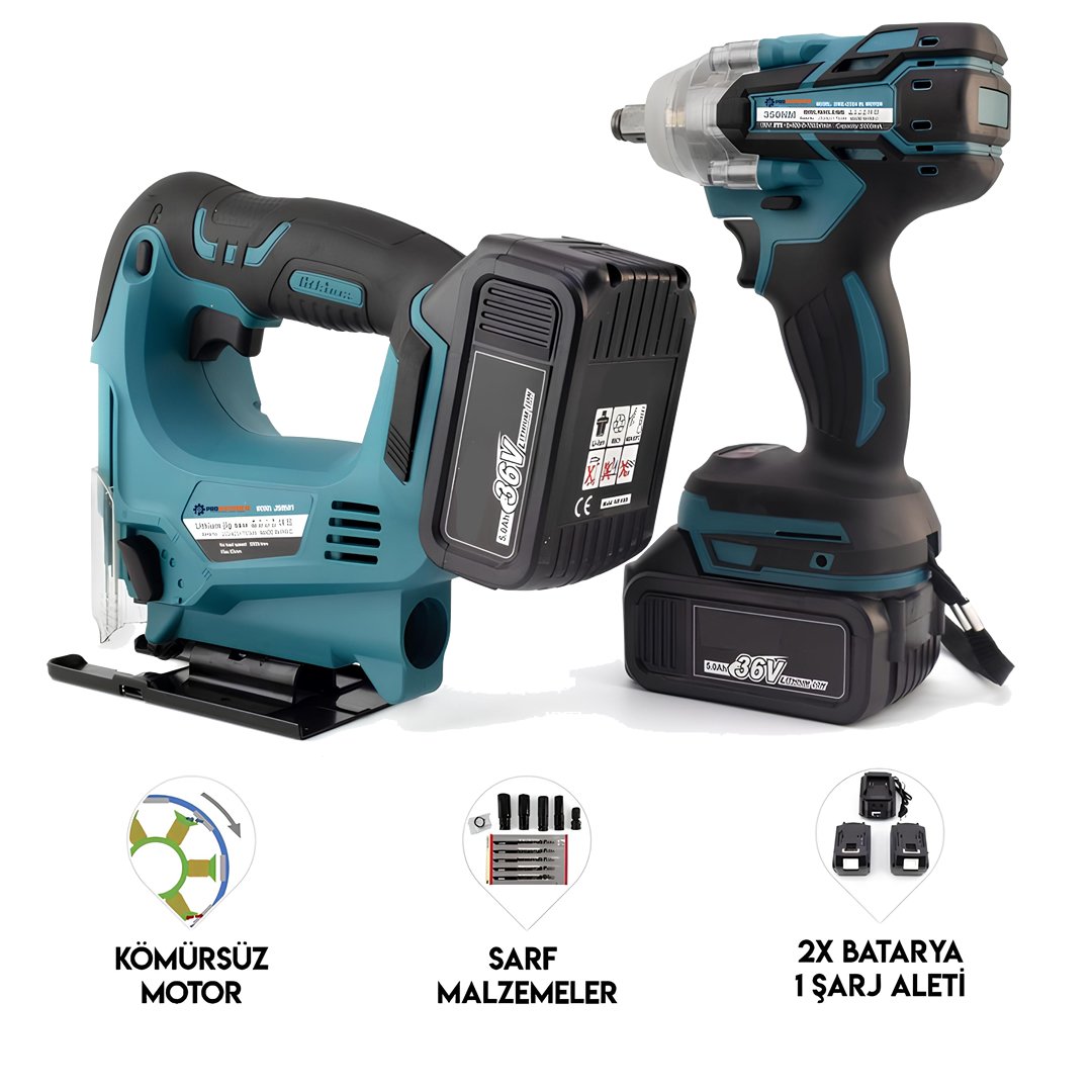Kömürsüz çift batarya 2 li set makine ile işlerinizi kolaylaştırın.