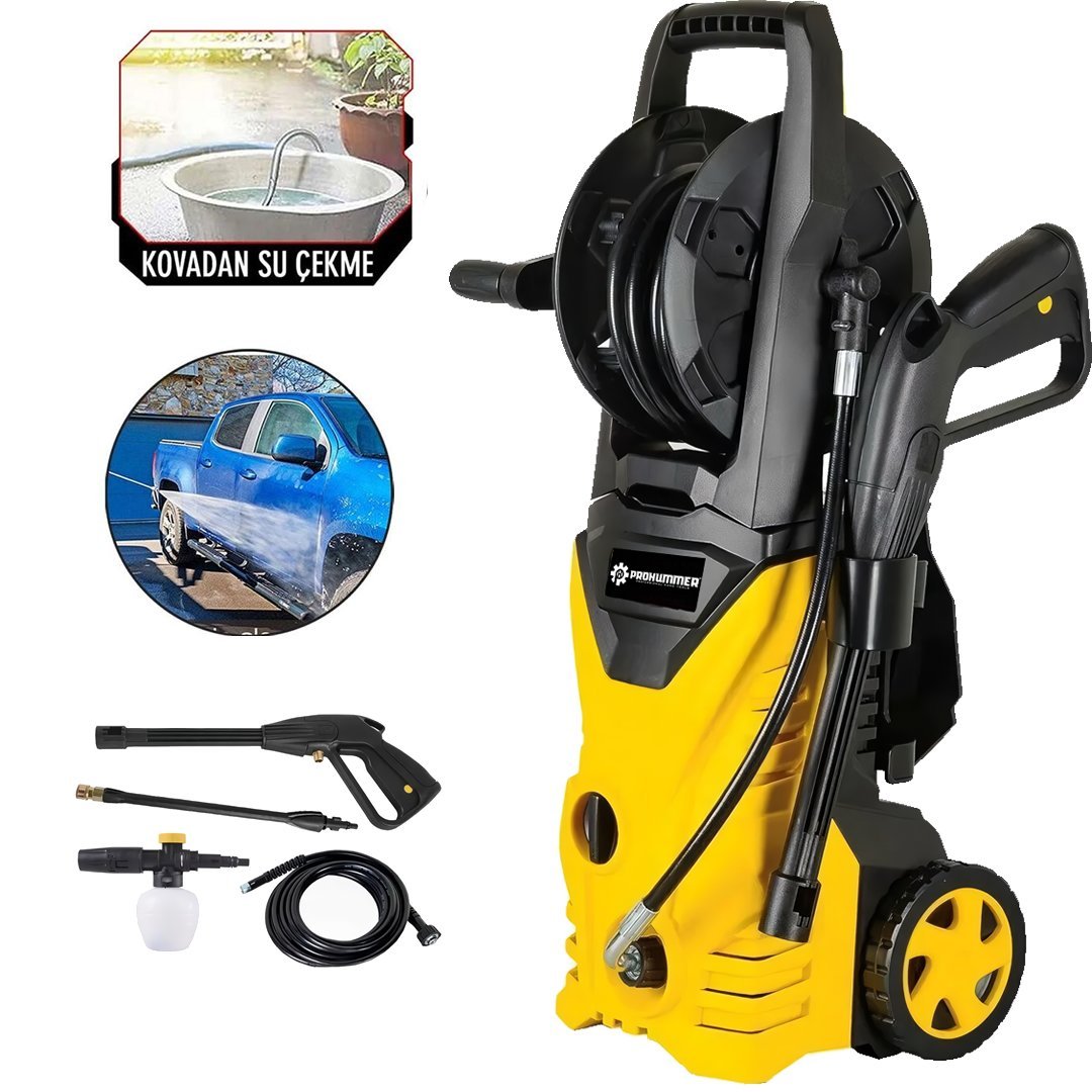 Bu yüksek basınçlı yıkama makinesi, araç yıkama, bahçe temizliği, dış mekan yüzeylerinin temizlenmesi gibi işlerde etkili bir temizlik sunar. Hem musluktan hem de kovadan su çekme özelliği sayesinde farklı su kaynaklarıyla kullanılabilir. İşlevsel ve çok yönlü bir temizlik aracı olarak tasarlanmıştır.