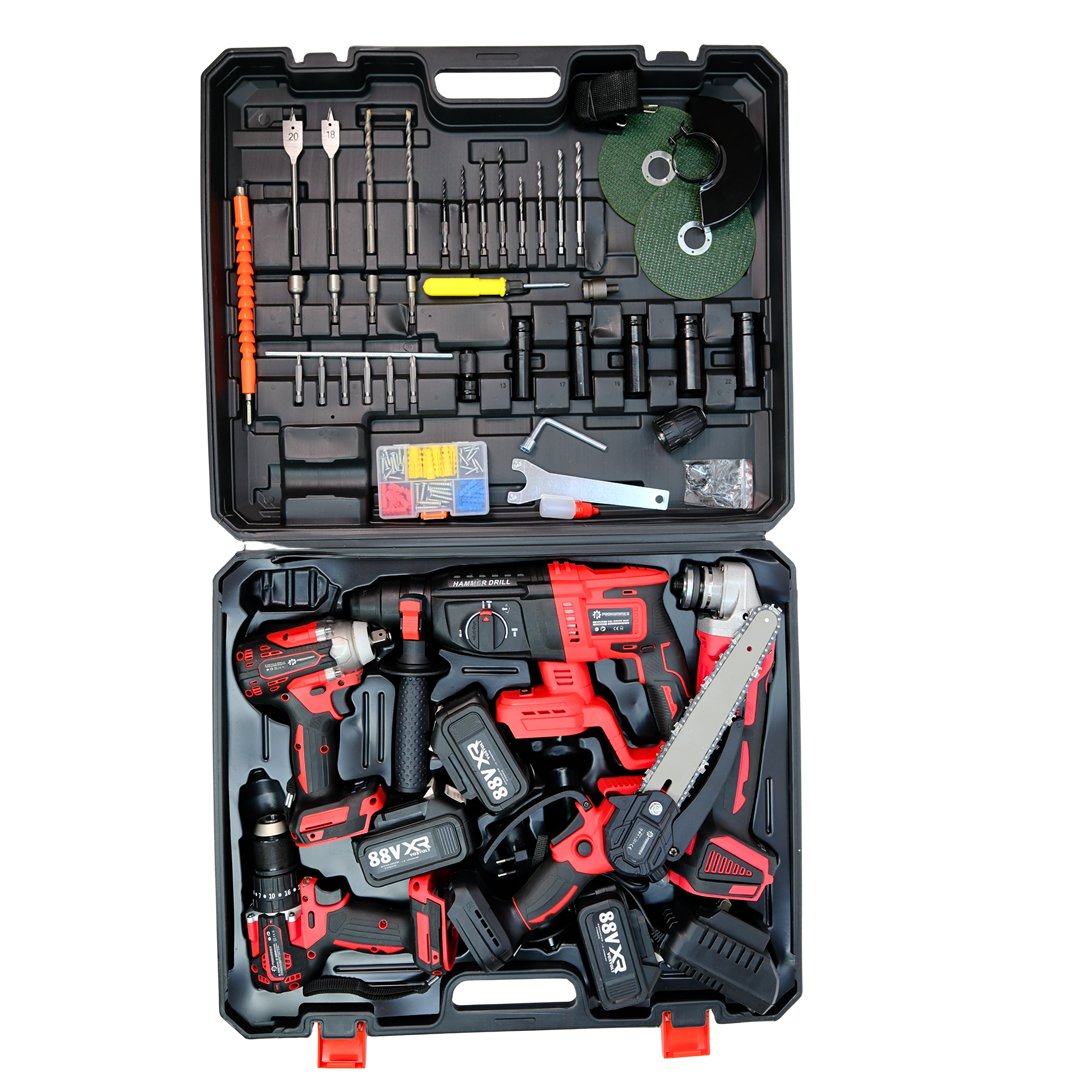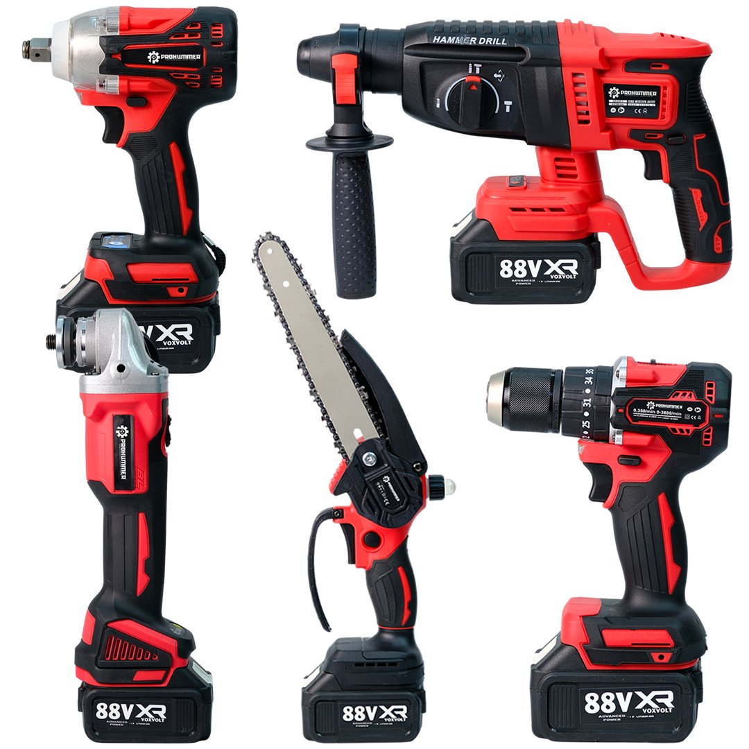 Ev ve atölye işlerinde kullanabileceğiniz bu sette 350nm somun sökme, sds plus uç girişli kırıcı delici, 125 mm devir ayarlı avuç taşlama,13mm uç girişli vidalama matkap ve 20cm dal budama testeresi bulunmaktadır.