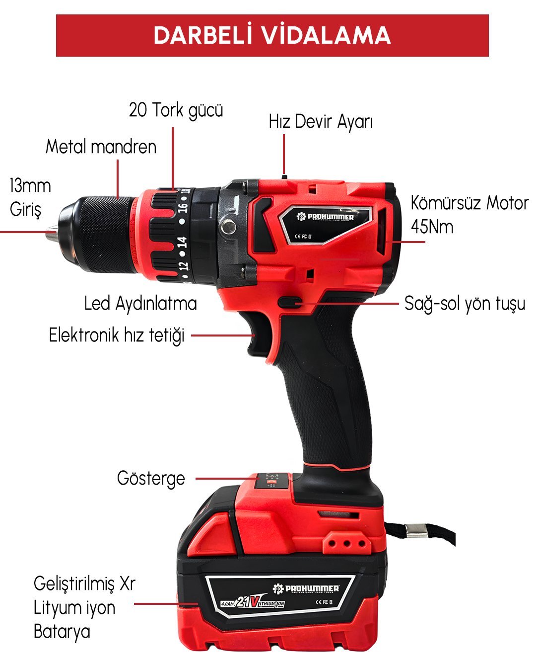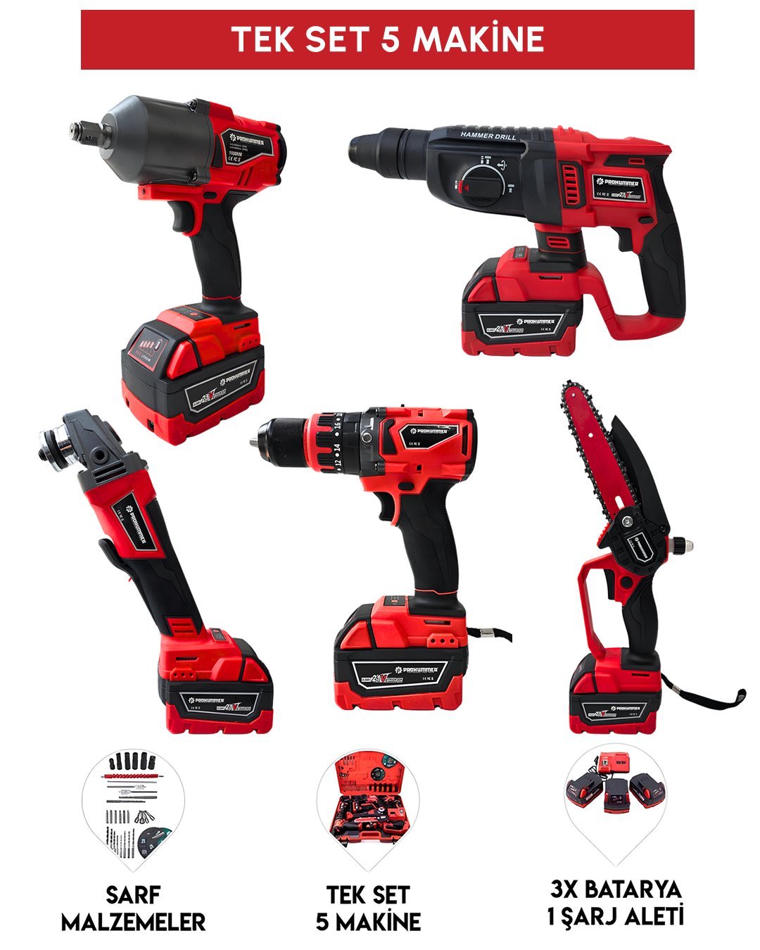Prohummer PH333 Profesyonel 5’li akülü set; ev, atölye, şantiye ve bahçe işlerinde ihtiyacınız olan tüm güçlü ekipmanları tek pakette sunar.